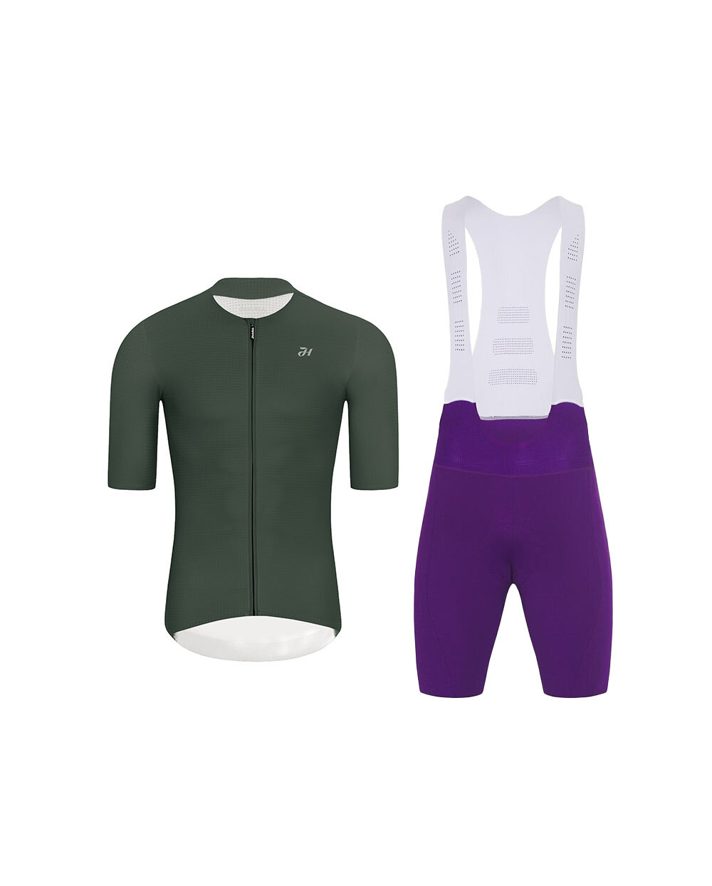 Комплект Holokolo для велогонок – ідеальний вибір для велосипедистів, які шукають поєднання комфорту, функціональності та сучасного дизайну. Поєднання джерсі з короткими рукавами ELEVATE зеленого кольору та шортів NOVEL PRO з нагрудником фіолетового кольору забезпечує надійне спорядження для інтенсивних тренувань та тривалих годин у сідлі.