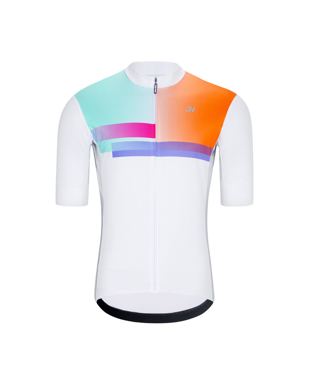 Джерсі з короткими рукавами виготовлено з міцного та гнучкого матеріалу, який адаптується до рухів тіла та витримує часте використання. Сітчасті панелі з боків та під пахвами підтримують вентиляцію та ефективне відведення поту, тому ви почуватиметеся комфортно навіть у теплі дні. Практичне спорядження включає класичну потрійну задню кишеню, кишеню на блискавці та протиковзкі кінці на подолі та рукавах. Абстрактний дизайн з барвистими акцентами надає джерсі сучасного спортивного вигляду.