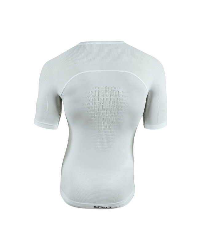 Найлегша майка, яку ми коли-небудь виготовляли, призначена для надзвичайно напружених спортивних занять із сильним потом. Вага всього 80 грам, він може похвалитися найвищою концентрацією транспіраційних технологій. Отвори різного діаметру, розташовані в певних областях сорочки, тривимірна мікроребристість та комбіноване використання поліпропілену створюють надзвичайний потік повітря на шкірі. Надлишок тепла тіла розсіюється негайно, без негативного впливу на спортивні результати.